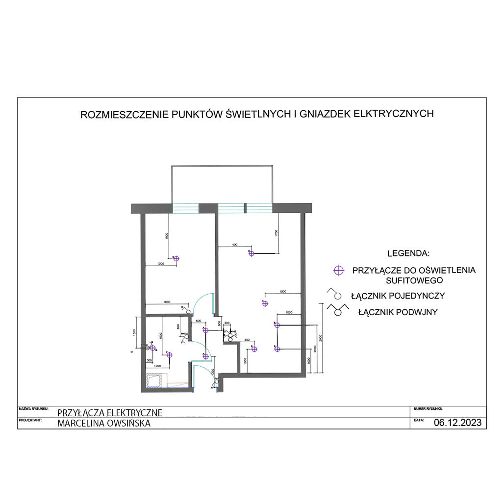 – schemat rozmieszczenia przyłączy elektrycznych, czyli rysunki informujące, gdzie i jakie gniazda wtykowe (kontakty) i łączniki zostały zaprojektowane.