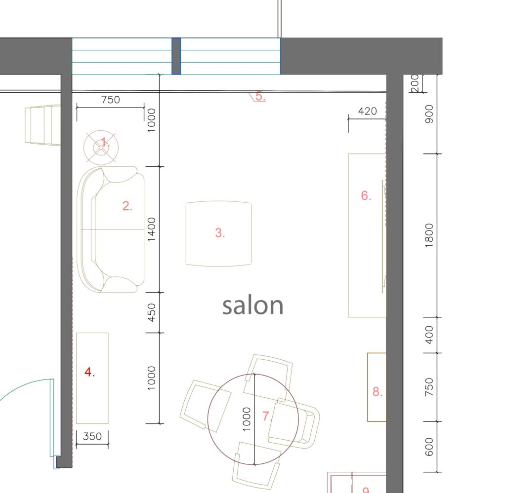 Po wybraniu ostatecznej wersji wizualnej projektu przygotuję rysunki 2D przedstawiające plany pomieszczenia, na których będą niezbędne informacje, np.: