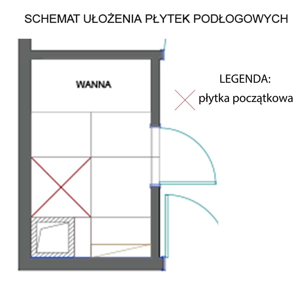 Na rysunkach w zależności od potrzeb zostaną wskazane: np.: kierunek układania płytek, płytka początkowa oraz sposób zakończenia płytkowania.