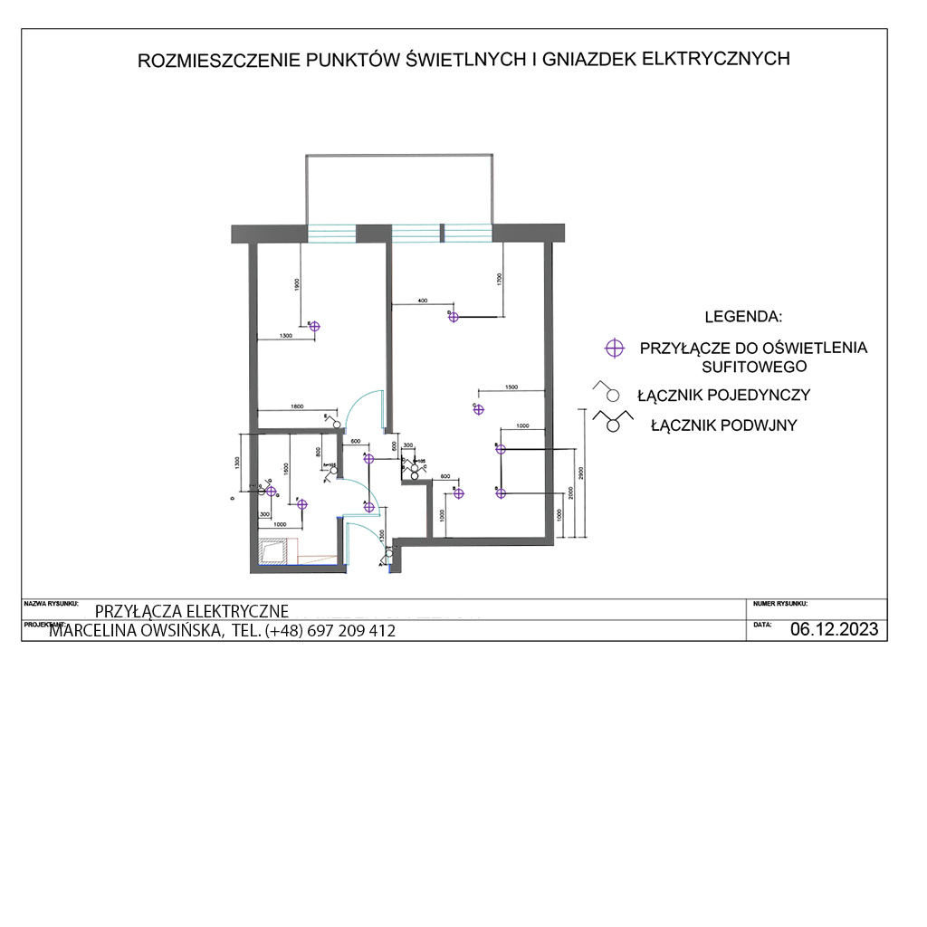 – schemat rozmieszczenia punktów świetlnych, czyli rysunki informujące, gdzie i jakiego typu oświetlenie zostanie zastosowane oraz w jakim miejscu zostaną zlokalizowane włączniki